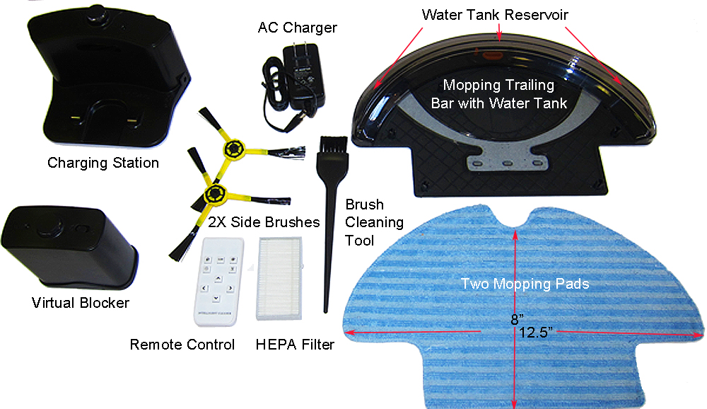 Hovo 650 is your personal and smart cleaning assistant. It will vacuum and mop the rooms of your home autonomously so you can spend your time doing more enjoyable activities. It helps pet owners and people with allergy or back pain to keep their house clean. Hovo 650 with HEPA filter is a multi-function robotic vacuum cleaner with strong suction power. Two side brushes cleaning to increase cleaning effectiveness. There is no roller brush to tangle pet hairs and debris. Hovo 650 has two extra features, UV light to kill germs and large water tank reservoir on mopping attachment to do wet mopping on hard surface floor. There is a water tank attachment for wet mopping. You can fill up water tank with tap water or Bona® cleaning solution. Extra large size washable microfiber mopping pads are included inside package.